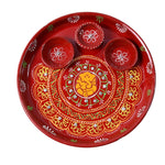 Hand-Painted Decorative Pooja Thali with Ganesha Motif and Diyas