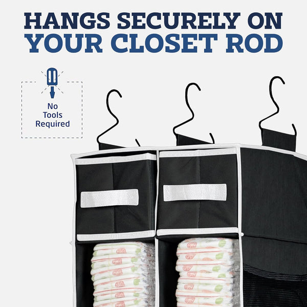 9 Shelf Hanging Closet Organizer with 5 Drawer Organizers, Baby Nursery Closet, Diaper Organizer, Slotted Storage Baskets, Hanging Drawers with Foldable Cube Storage