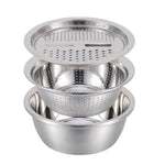 3 in 1 Kitchen Multipurpose Kitchen Stainless Steel Bowl, Drain Basket, Julienne Graters for Vegetable/Fruit Grater, Cutter, Mesh Strainers