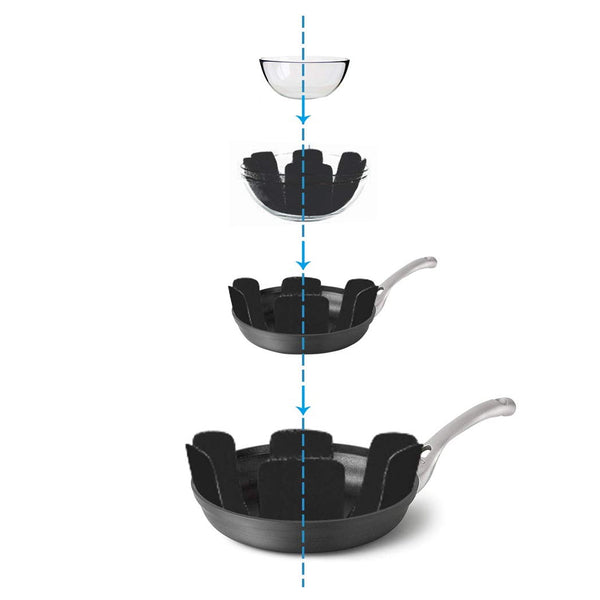 - EASY TO USE: Perfect protection when storing your cookware, bakeware, stoneware, skillets, bowls, plates and more. Place it in between pots and pans to avoid scratching, or used in between glassware and ceramic to avoid locking or chipping.