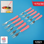 Premium Stainless Steel Fruit Fork Set – 10 Pieces with Soft Non-Slip Handle | Reusable Two-Prong Design for Fruit, Snacks & Desserts