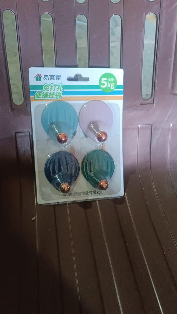 Self Adhesive Wall Hooks Waterproof Adhesive Sticky Stylish Hooks | Hanging Capacity 5 KG Max | Multipurpose Home Storage (Colourful Hook, Pack of 4 Pcs)