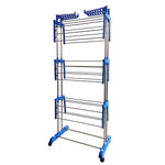 Efficiently dry your clothes with this Foldable Clothes Drying Stand, made with a combination of durable stainless steel rods and strong ABS plastic joints. This drying rack is ideal for maximizing space with multiple layers and foldable wings. The sturdy wheels provide mobility, and the side hangers are great for shirts, trousers, or delicates. Whether used indoors or outdoors, this rack can hold a large number of garments while keeping your laundry room neat and organized.