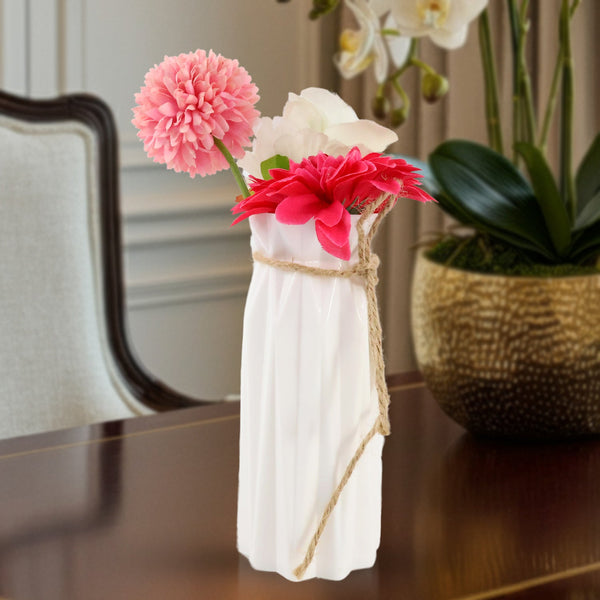 home decor vase , flower holder , decorative table vase , indoor plant vase , artificial flower vase , living room decor , office desk decor , wedding table vase , housewarming gift item , white ceramic-look vase , modern decorative vase
