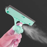 - The glass scraper features a built-in watering can that allows for spray function. You can spray water, cleaning solutions, or disinfectants directly onto the surface you're cleaning, making the cleaning process more effective and convenient.
