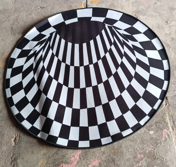 3D Space Round Carpet, Checkered Vortex Optical Illusions Non Slip Area Rug -Slip Floor Mat Non-Woven Doormat, for Living Dinning Room Bedroom Kitchen, 3D Vortex Rug Visual Illusion Rug Anti-Skid Area Dining Room Mat (1 Pc / 78 Cm)